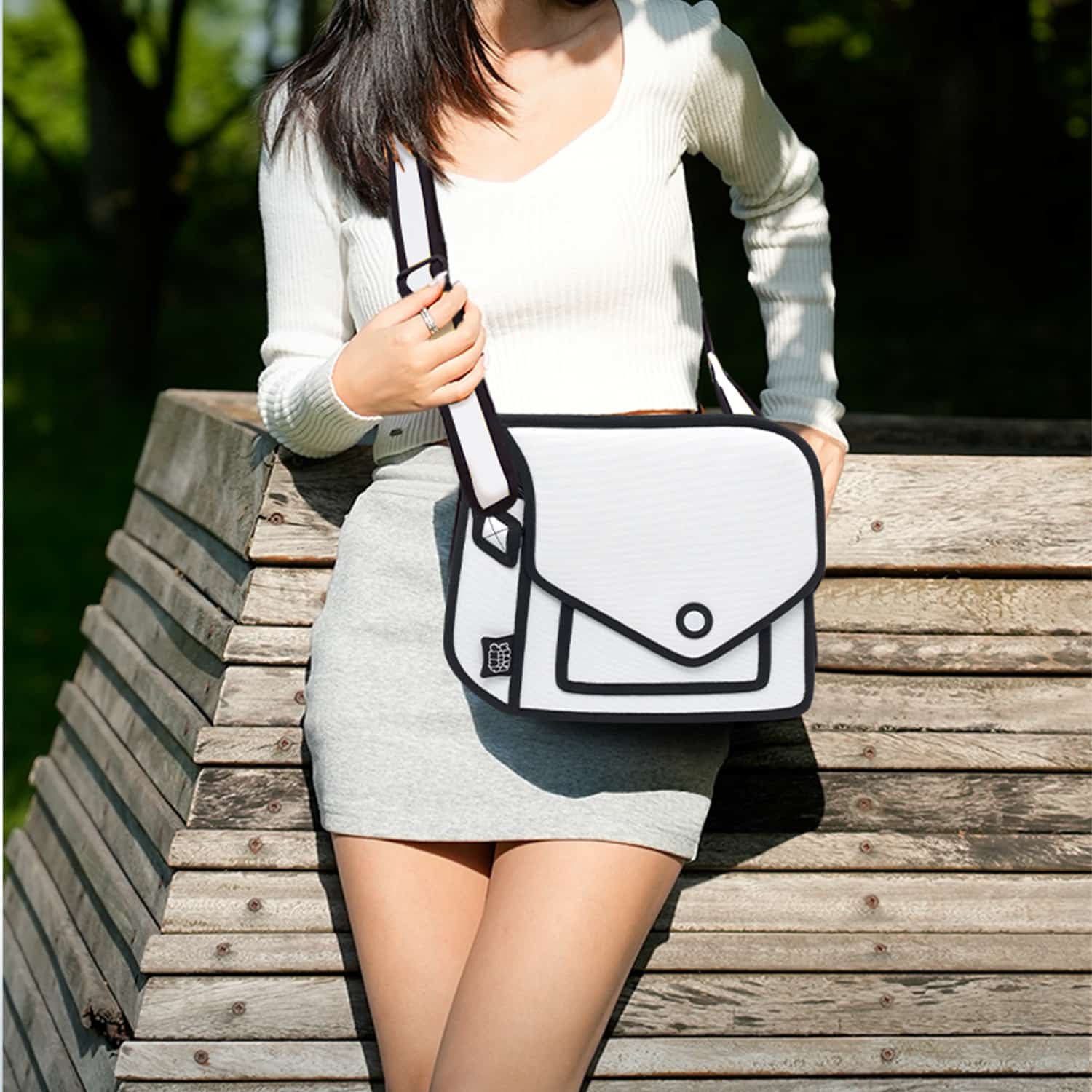 Giggle 2D Cartoon Shoulder Bag-white (5)